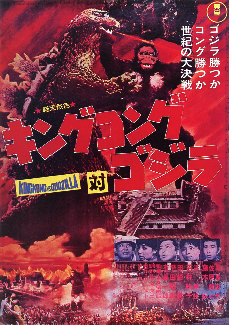 King Kong vs Godzilla was the result of vigorous labor and politics on Toho’s behalf. The famed Japanese studio held a desire to pit Godzilla against another titan of pop culture for years, and had considered many classic monsters like Dracula and Frankenstein (which is how Frankenstein Conquers The World came to be). Countless experts have researched this film and documented fascinating facts on it’s behalf – but I am not one of those experts! I am, however, a huge fan of this film. It can be dreary at times, but this cinematic adventure is a classic for a reason. KKvsG is a hard film to outboast- and also sparked one of my favorite round of theatrical posters ever conceived for a movie. Here are a few extras, click to expand: